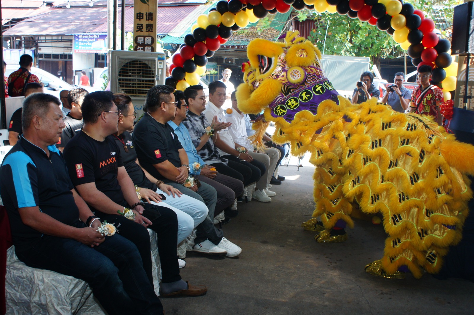 At the opening ceremony, Mohd Taufiq presented a donation to the volunteer team, received by Chairman Chen Zhiyong. Also present were advisors郑国良, Chen Youqiang, Dong Zhiming, Wang Jiashun, Vice Chairman Guo Nanshun, Secretary Soo Joo Hin, and Finance Director Yu Bizhen.